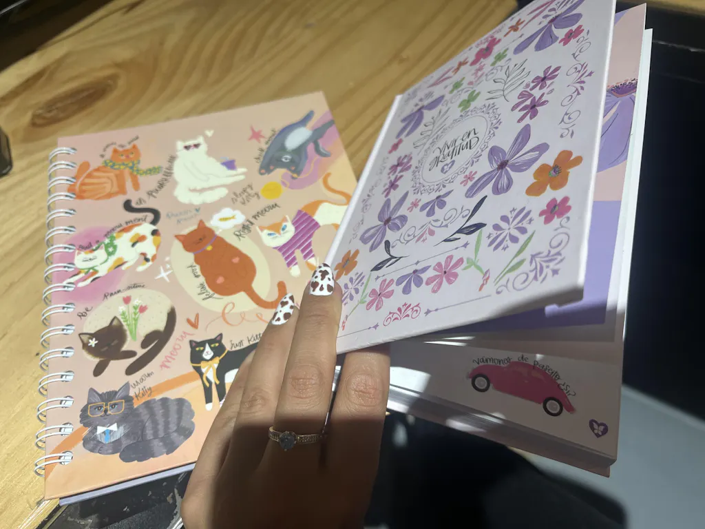 El diario es cosido a mano, lo que le da un toque artesanal y único. Además, cuenta con un elástico que mantiene todo en su lugar y dos cintas separadoras para marcar tus páginas más importantes. Cada detalle ha sido pensado para que puedas disfrutar de una experiencia especial mientras llenas sus hojas día a día.